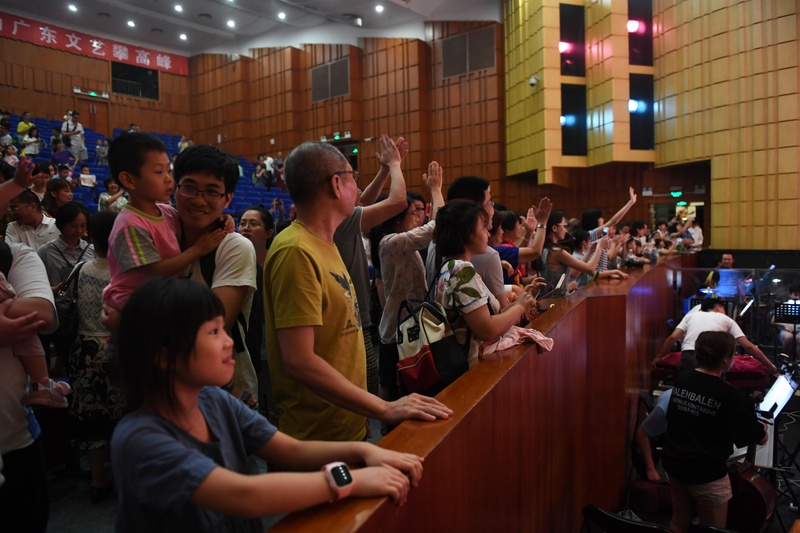 今天来看戏的有“大小”戏迷,梁阿姨一家就是忠实的粤剧观众。梁阿姨说,今年准备读一年级的小孙女从小通过电视接触到粤剧,就爱上粤剧了,经常在家扮演剧中各种角色,还主动提出要去剧场看演出,粤剧界的演员她基本能认出,今天演出的《猴王借扇》她非常喜欢,也经常看广东粤剧院的演出,是一个超级小戏迷。