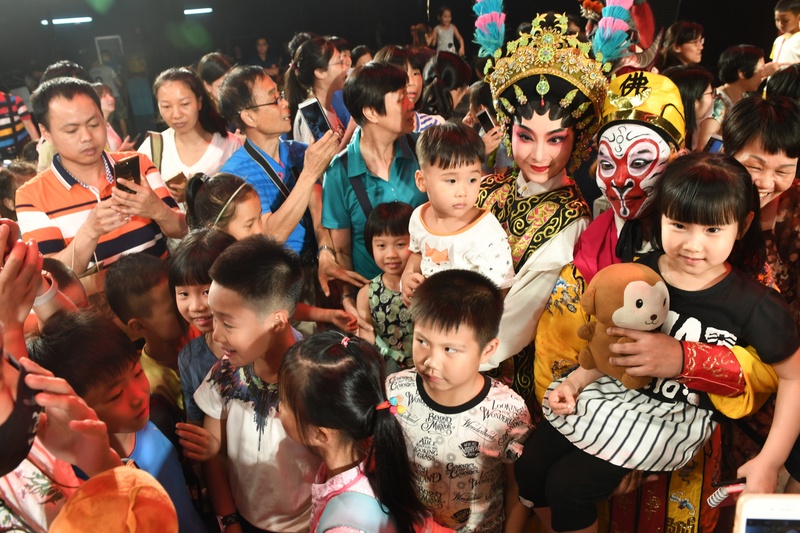 为了让小朋友看戏能更加投入,主办单位广东粤剧院特意在演出开始前,举行了一场别开生面的“暖场”活动,由国家一级演员文汝清在剧场大堂为小朋友讲解粤剧的基本知识;围绕《猴王借扇》剧中人物的行当特征,用小朋友易于接受、通俗易懂的语言进行讲述,让小朋友看戏之前,对这个戏有了一定认识,增加他们看戏的兴趣。“孙悟空是什么行当啊?”“牛魔王是丑生还是老生?”在问答游戏中,参与活动的小朋友都能答出标准答案。有家长表示,“暖场”活动很有心思,小朋友对这个戏和人物有了一定的认知之后,看戏也更投入了。