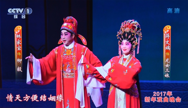 “2017年新年戏曲晚会”于12月30 日晚在北京国家大剧院举行,我省选送的、由广东粤剧院一级演员蒋文端和林家宝主演的粤剧《柳毅传书》之“花好月圆”片段代表广东粤剧在晚会上亮相。习近平总书记等党和国家领导人与首都近千名群众一起观看演出,喜迎新年的到来。