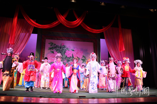 23日晚,陈镇江、杨小秋、张雄平、何瑛华与香港人士吕林志嫦主演《春草闯堂》。该剧故事荒诞,剧情诙谐,是一部大众喜闻乐见的轻喜剧作品。其中,吕林志嫦扮演的小旦春草和张雄平扮演的文丑知府胡进则最具表演亮点,尤其是张雄平的丑角扮演,将胡知府的丑恶嘴脸演绎的惟妙惟肖,令人忍俊不禁。剧中诙谐的情节也令香港观众不时爆发出欢笑声。