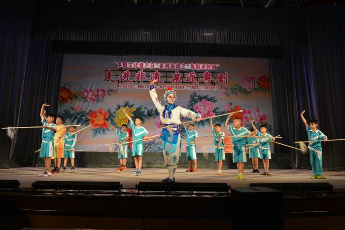 本次“粤剧进校园”活动主题为“走进非遗,亲近粤剧”,由广东省文化厅、顺德区文化体育局主办,省艺术研究所、广东粤剧院、广东碧桂园学校承办。我院副院长、国家一级演员曾小敏联同优秀青年演员黄春强、李嘉宜、康健、陈家鼎、郭敏娴、莫伟英等为广东碧桂园小学、中学一千多名师生送上精彩的粤剧表演。