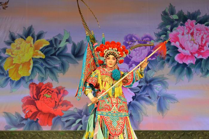 莫伟英演绎的折子戏《刘金定之寿州救驾》最后登场,飒爽英姿,气势如虹