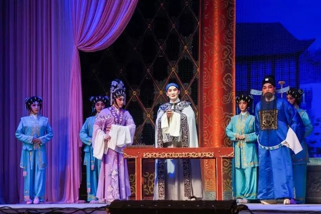 青年花旦陈韵玲饰演“三国戏”中经典的女性角色小乔。她扮相娇羞美艳、温婉动人。剧中,其唱腔悦耳动听,情绪非常到位;其表演很是细腻,在劝夫过程中双目含泪,动情不已。为展现小乔的娇美身段,剧中她还领舞了一段扇子舞,当晚的表演获得了众多好评。