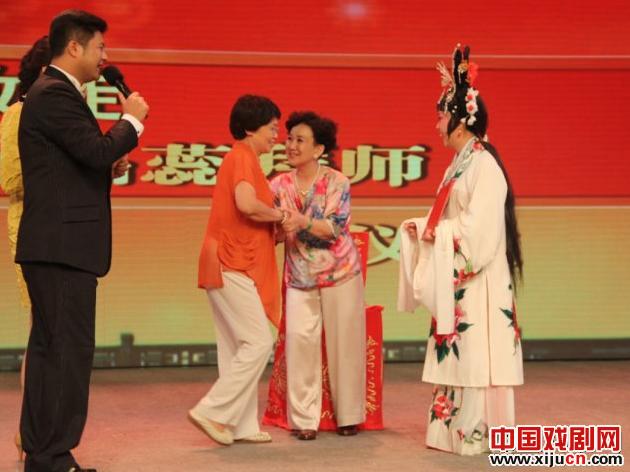 豫剧名家牛淑贤向张老师投以热情的拥抱
