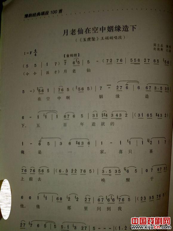 其中第9首的“月老仙在空中姻缘造下”唱段的曲谱(片段)可见下面图片: