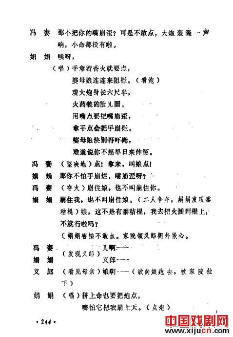 下面我给出了“放炮”情节的台词(这是从常香玉演出版本上截取的两页),以供您欣赏。