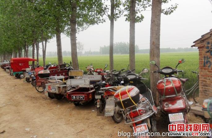 十里八乡观众的电动车摆了长长的一溜。