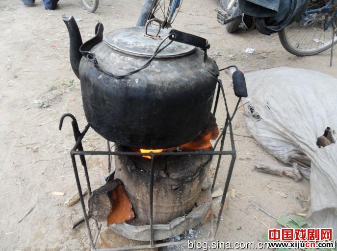 理发摊烧热水的炉子和水壶。
