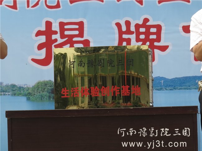 在鞭炮声和喜庆的音乐声中,在现场所有人的欢呼声中,夏江河处长和王志斌书记进行揭牌,当一块金光闪闪刻有“河南豫剧院三团生活体验创作基地”的牌子呈现在大家面前时,我团演职人员激动之情难以言表。