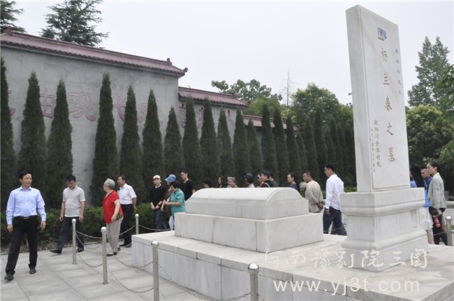 在乡亲们的欢呼声中,文化厅领导和团领导与全体演职员一起,怀着期待和凝重的心情去到我们三团“生活体验创作基地”挂牌地——杨兰春文化园进行参观,并对《朝阳沟》之父——杨兰春先生进行拜谒,当老艺术家们见到杨兰春先生的墓碑时,遥想当年和杨兰春先生在一起的那一幕幕,禁不住流下热泪,满怀思念之情。大家对着杨兰春先生墓碑深深的三鞠躬以示怀念,并围着墓碑进行瞻仰。