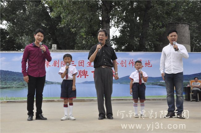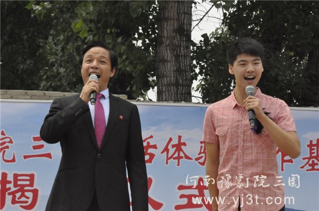 上午十时,在乡亲们的期待中,在小朋友们欢呼声中,各位领导及老中青艺术家陆续上台,揭牌仪式正式开始。主持人首先对莅临仪式现场的领导、艺术家进行逐一介绍;随后,朝阳沟村党支部书记赵朝阳、我团团长贾文龙、省文化厅艺术处调研员夏江河依次做了致辞和讲话。