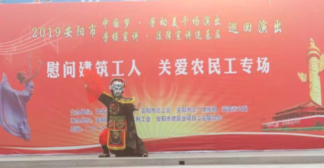 7月12日下午,2019安阳市“中国梦.劳动美”千场演出、劳模宣讲、法律宣讲送基层和安阳市住建局文明服务进工地活动走进了我公司七个城中村安置房工程晁家村项目部,为奋战在项目建设的一线员工带来了一场精彩的慰问演出。
