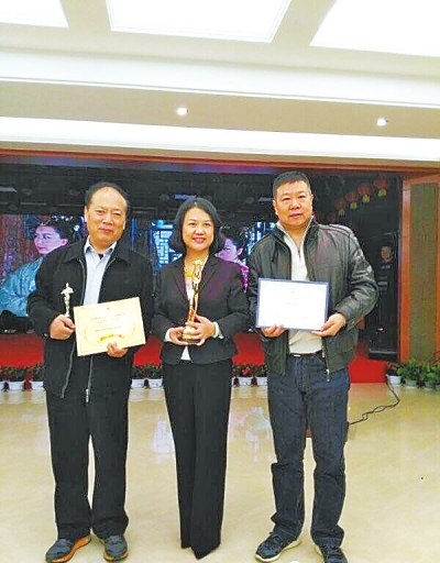 李亚辉董事长与姚金成老师、卢卫国导演共举国际殊荣。