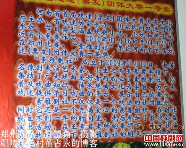 图四:看素雅剧社的介绍,是成立于2009年7月16日。