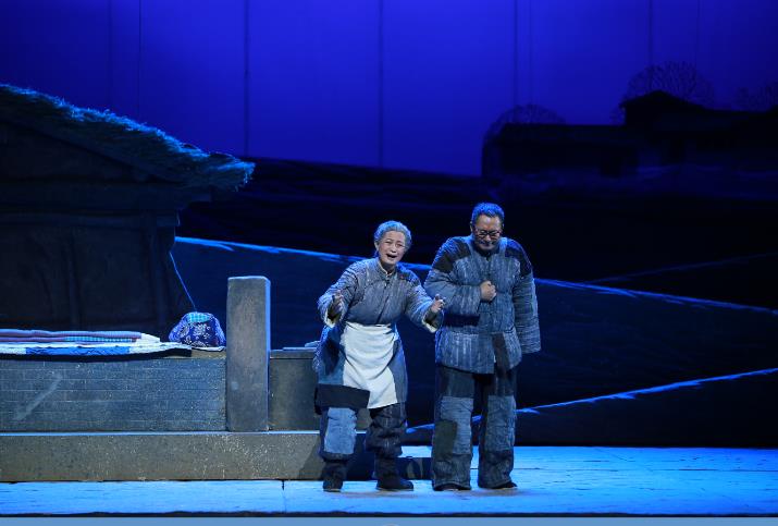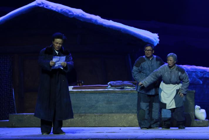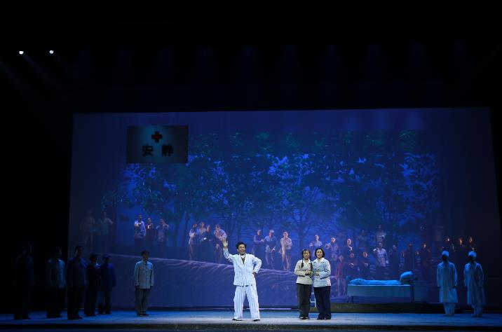 焦裕禄是一个具有强烈实践精神的人,他的心里装着对百姓的深情。所以,即便是病魔缠身,他还是觉得“吃别人嚼过馍没味道”,还是要坚持到抗洪第一线去。这一场的编排赢得了观众们持续不断的掌声,演员们身上扎实的武戏功底和舞台情景完美地融合在了一起。贾文龙老师高超的武戏水平更是令大家交口称赞。铿锵有力的伴奏和高难度的武戏编排令大家直呼过瘾。焦裕禄因劳累和病痛最终晕倒,不禁令人潸然泪下。