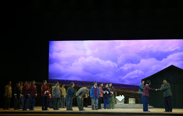 面对兰考恶劣的自然环境,面对苦不堪言的种种现状,焦裕禄用一种乐观主义的态度带领兰考人民艰苦奋斗。“春打六九冰河开,三月雁归报春来……困难压头气莫殆,有志脚下路自开。幸福不会从天降,要吃桃子把树栽……”伴着欢快力的音乐设计和一派欣欣向荣的舞蹈设计,观众也会迸发出满满的激情。焦裕禄为我们表达出了一种“黄沙百战穿金甲,不破楼兰终不还”的决心。当时,电视剧《平凡的世界》热播,《平凡的世界》这本书也成为了图书馆、书店里的“抢手货”。这本书带给人们一种纯朴而又昂扬的奋斗的力量,我想这似乎与豫剧《焦裕禄》所传达出的能量有异曲同工之效。这正是我们这个时代所需要的精神,更是我们这些九零后,以及比我们年长的八零后和比我们年幼的零零后们所需要的精神。
