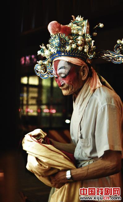 徐家志连续唱了几出豫剧后,脱去了内黄外红的戏服,坐下来歇一歇。他们是一个4人豫剧团,平均年龄都在60以上。一路唱,一路玩。“我们去过一些城市,很多人认为我们是卖唱的,其实不完全,我们是真爱唱曲。”徐家志说。