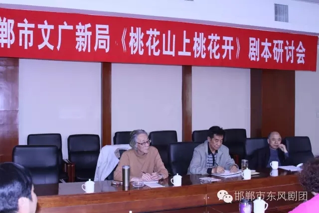 4月17日,在石家庄召开了《桃花山上桃花开》的剧本研讨会。由邯郸市文广新局张局长带队,局艺术处申处长、导演、编剧剧团领导班子与全国著名编著孙德民、刘兴会、陈家和进行了深入的研究与讨论,使剧本再一次得到了升华。