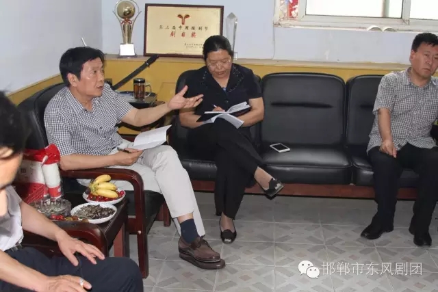 6月14日、15日市文广新局郝局长两次督导《桃花山上桃花开》剧目创排,并与导演、编剧探讨剧本。