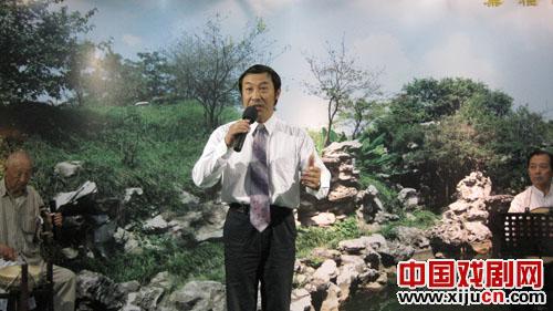 下午一点多钟,离演出还有一个小时,票友们就早早来到古琴陈列馆。这里仿佛成为中老年交流健康养生心得体会的场所。邵伯镇的朱永惠已是78岁高龄了,依然是红光满面,精神抖擞。琴师汪祖彭为他吊嗓试唱了一段《四进士》“上写天伦”,他唱得神完气足。71岁的赵福全向他讨教养生经验,朱永惠乐呵呵地说:“一句话,唱京剧延年益寿!”