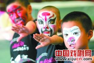 参加“打开艺术之门”京剧夏令营的100名小营员,日前在国家京剧院进行了汇报表演。此次夏令营由中山公园音乐堂与国家京剧院共同推出,包括“京剧我知道”、“学段拿手戏”、“后台也精彩”、“现在我登台”4个单元,小营员们被分为老生、花旦、青衣、花脸、丑角、把子功6个行当。(戴冰摄)