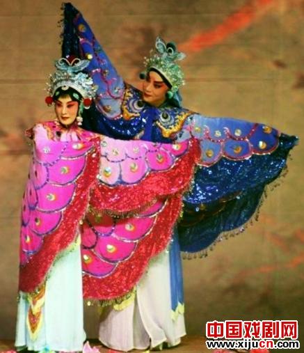 《梁祝》第八至十一场,回还女儿相的祝英台,造就了回复程派本功戏的火丁,以更多的施展艺术才华余地。戏份循英台“据理-对争-无奈-妥协-相会-哭坟-化蝶”的路子展开。火丁以一曲魂思梦牵的“步香阁仍显我女儿风仪”唱段亮相,配合风情万种的表演,堪称美轮美奂。
