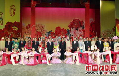 演出结束后,胡锦涛等党和国家领导人走上舞台,同演职人员亲切握手,祝贺演出成功。