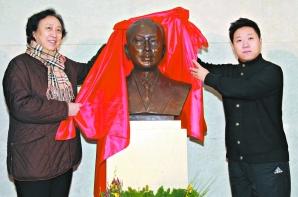 马连良女儿马小曼(左)与马派弟子穆雨,共同为马连良塑像揭幕。