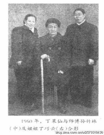 丁果仙向孙竹林学戏, 大致算起来也就十二三年。但就在这短暂的十几年中, 丁果仙打下了坚实的基础。孙竹林对晋剧那严谨而又执著的精神, 极大地影响了丁果仙一生。一日为师, 终身为父。丁果仙善解人意, 是个知恩必报的人。在她名震并州、誉满三晋,成为全国的大名角以后, 她也没有忘记恩师孙竹林。孙竹林晚年体弱多病, 家境也不十分富裕。每逢中秋、过年, 丁果仙都要亲自或托人礼拜恩师, 并告知老人:“有什么难处尽管说话, 奉养照顾恩师是我一生的重责。”这重情重义的举动, 深深地感动着孙竹林老人⋯⋯