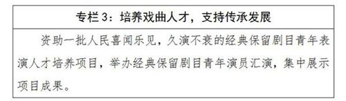 1.戏曲表演人才培养、民族歌剧创作人才培养、经典保留剧目青年表演人才培养、民族地区和特色艺术创作人才培养、杂技表演人才培养项目;