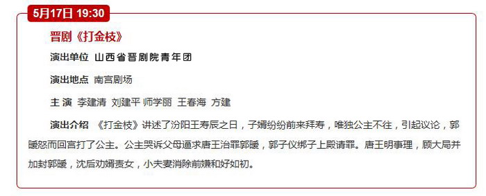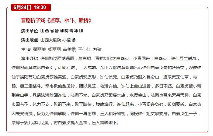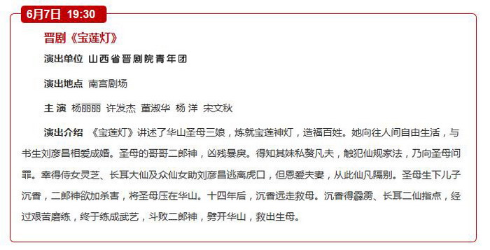 山西省晋剧院2016年5、6月期间将在我市各剧场演出:国家艺术基金资助项目《巴尔思御史》《打金枝》,和其他戏迷朋友喜欢的经典晋剧《算粮登殿》《宝莲灯》,折子戏《教子》《别窑》《盗草》《水斗》《断桥》等剧目。