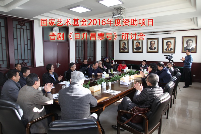 2017年2月23日上午,山西省文化厅二楼会议室召开国家艺术基金资助项目晋剧《日升昌票号》研讨会,会议邀请了省内多位戏剧界的知名专家,每位专家都对晋剧《日升昌票号》的演出给予了肯定,并对该剧演出中的一些问题,表达了各自的看法,并提出了建设性的意见。