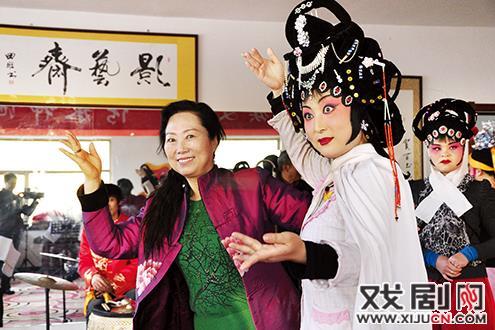 黄凤兰老师(左)为农村文艺爱好者授艺