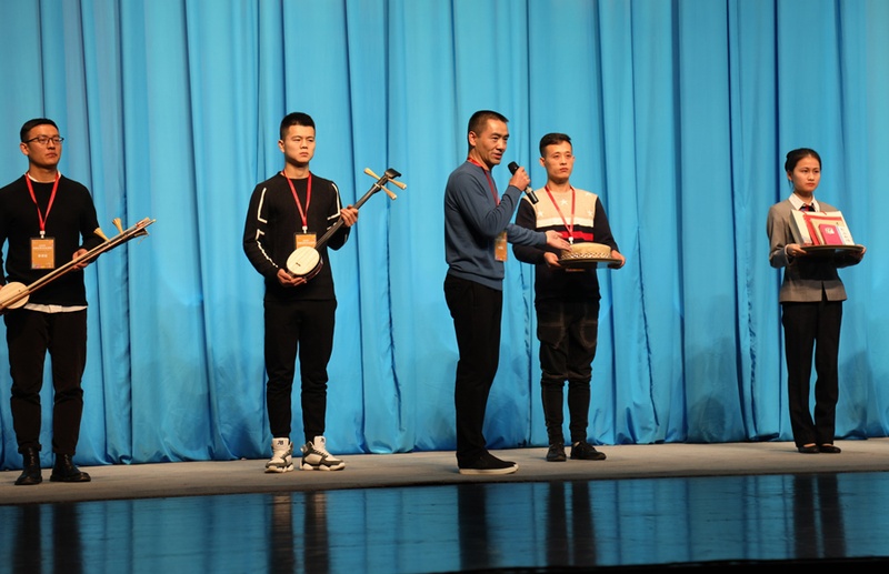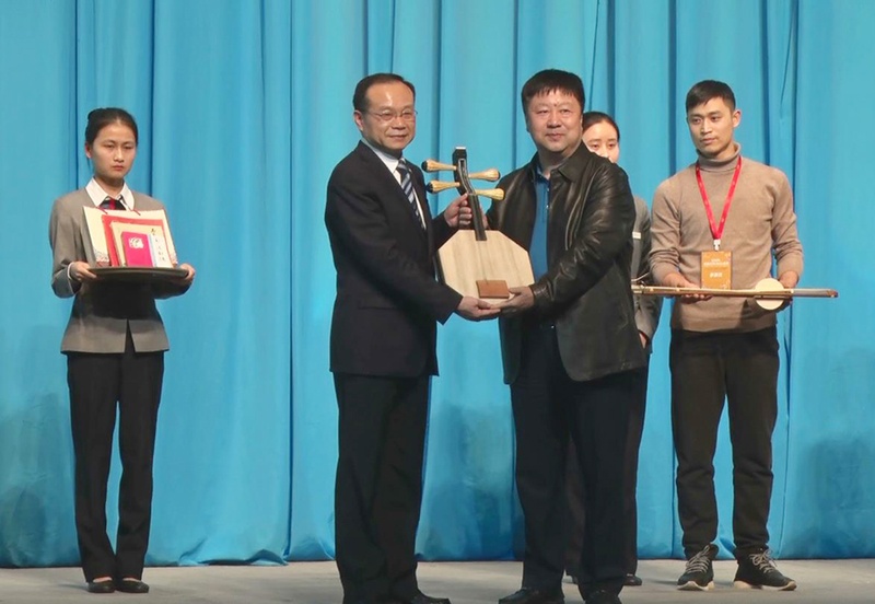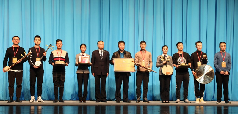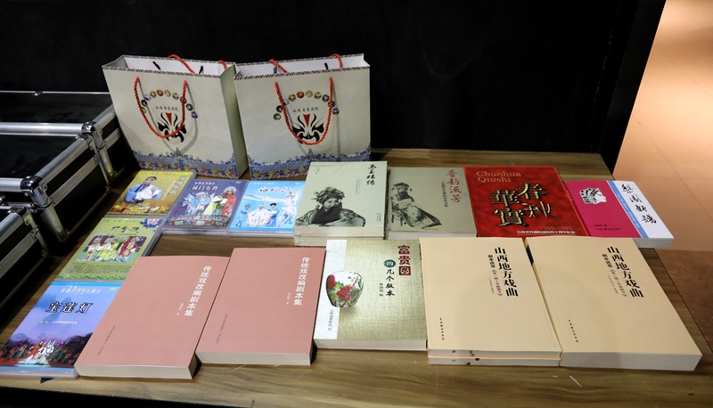 我院青年团团长赵勇强向现场的观众介绍了具有晋剧特色的捐赠物品,晋剧乐器晋胡一把、二弦一把、三弦一把、四弦一把、鼓板、马锣、小锣、铙钹、铰子、梆子等,有关晋剧历史的书籍和影像资料,以及来自山西最大的河流,被山西人称为母亲河——汾河的一块刻有“晋剧”石头。