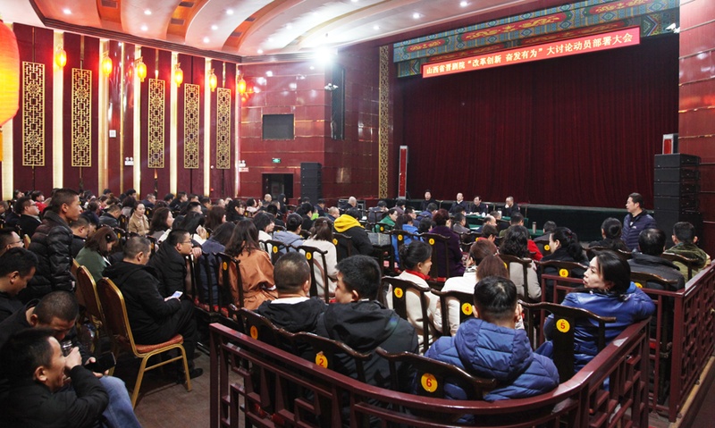 为了深入贯彻习近平总书记在庆祝改革开放40周年大会上的重要讲话精神,按照省委、省文旅厅党组、山西演艺(集团)党委,关于开展“改革创新、奋发有为”大讨论文件精神以及省委宣传部开展增强“四力”教育工作实践会议精神,我院于2019年3月4日上午10点,在山西省京剧院梅兰剧场召开了关于开展“改革创新、奋发有为”大讨论的全院动员部署大会。