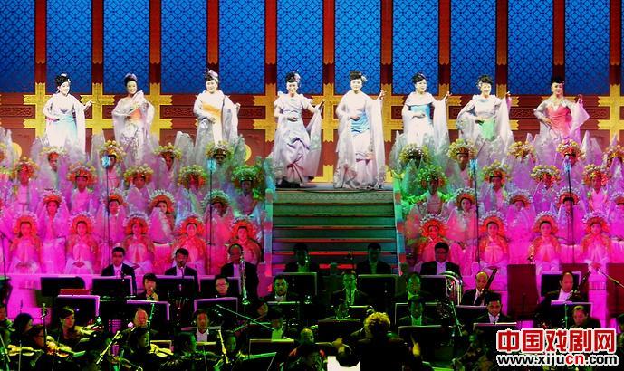 八位旦角新秀演唱“人说山西好风光”,如百花迎春、百鸟争鸣,俏丽动人。