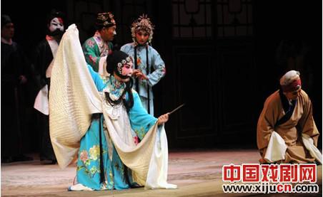 晋剧"丁派"传人乔俊芬(前左)在《闹公堂》中饰演窦秀英。