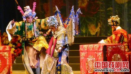 由方健、李明星、奥新平演出的《黄鹤楼》,这是晋剧的一出传统戏,前辈名家都常演此剧。诸葛亮用计使刘备借荆州,此地为军事要塞,兵家必争之地。周瑜心有不甘,定计邀刘备过江,意欲软禁,迫使其就范。没想到还是让诸葛亮给耍了。三位演员表演能从人物出发,观众们都说,同是小生戏,周瑜和吕布不一样,周瑜是将才,有勇有谋,重在内心的作表。周瑜的傲气、怒气;对刘备的盛气凌人,和对赵云的畏惧心理,从形体动作上充分展示出来。刘备的无奈、惶恐;赵云的威武不屈,鲜明深刻。这出戏是着重从人物内心来揭示剧情。对演员各方面的素质都是个考验。
