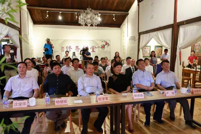 6月9日下午,古镇文化节开幕之际,区政协主席祝学军,副区长杨德妹,区委宣传部副部长、区文广局党委书记、局长杨继桢,七宝镇党委书记严俊,七宝镇党委副书记、镇长沈俊华,七宝镇人大主席钱国平,镇三套班子领导以及来自社会各界中国传统艺术爱好者来到七宝老街老公社水月堂参加首场“修齐讲堂”。