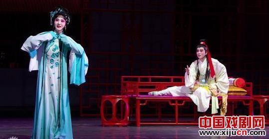 创作者按照原汁原味的昆曲曲牌体创作,在40人的民乐乐队基础上,加入了小提琴元素。人物造型在片子头的基础上,稍稍有所改良。例如宝钗头上的发髻是蝴蝶结造型。舞美灯光方面,也具有一定现代感,以红白色调为主,显得大气、干净。