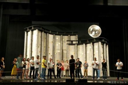 本剧的道具包括角铁焊的桌椅,都吻合蚂蚁国那种原生态的感觉,国王王后站在椅子前代替传统的坐姿,吻合大舞台尺度和观赏角度。