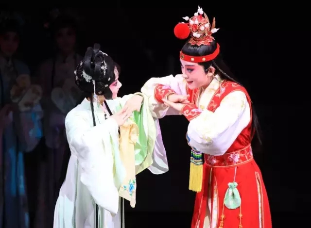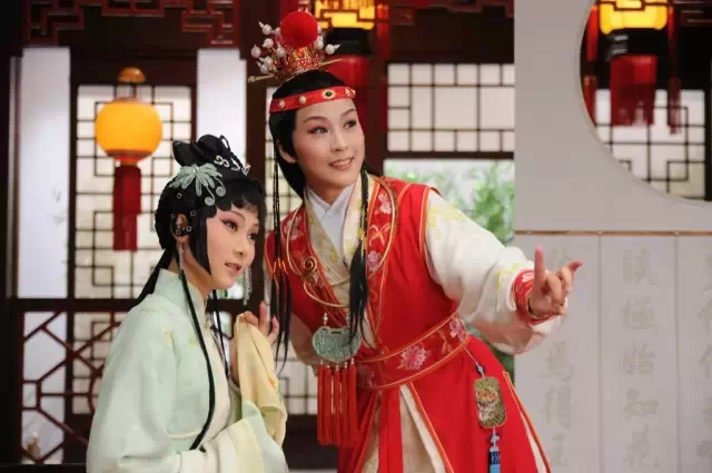 贾宝玉(翁佳慧饰演)和林黛玉(朱冰贞饰演)