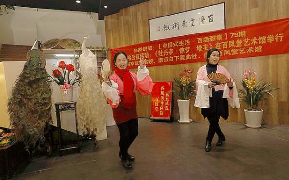 中国江苏网讯 (朱旭先)2月24日下午,南京秦淮区来凤街双堂路91号百凤堂内丝竹声声,昆曲悠扬,来自江苏省暨南京市40多名昆曲爱好者欢聚一堂,在这里举行《中国式生活 百场雅集》第79场暨昆曲《牡丹亭 惊梦 堆花》体验公益活动。