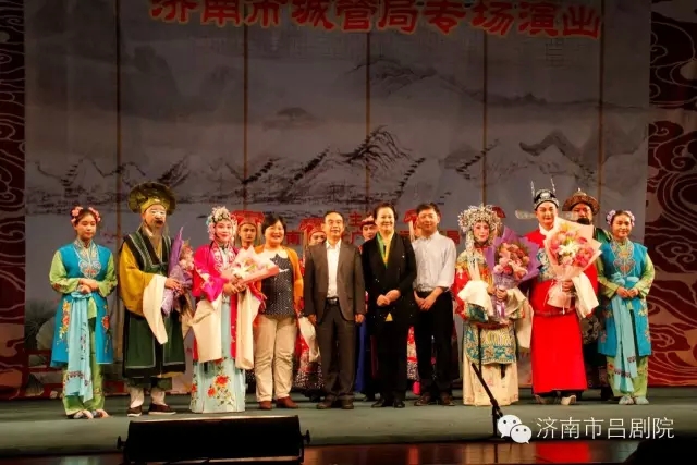 15、16日晚,济南市吕剧院分别为来自济南市城管局、济南市卫计委,济南市公交公司的朋友们举办专场演出,演出了经典的传统吕剧《姊妹易嫁》、《墙头记》,演出现场座无虚席,观众的叫好声、掌声不断,受到大家的热烈欢迎。演出结束后,城管局、卫计委和公交公司的员工为演员们送上鲜花,领导上台与演员们亲切握手祝贺演出成功,并合影留念。