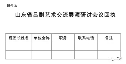为促进各地吕剧专业院团交流融合,将举办吕剧管理艺术研讨会,届时将邀请各地市县区(包括省外及民营)吕剧院团长及有关领导参加,齐聚吕剧发源地,共商吕剧发展大计。请参会人员于8月25日之前填写参会回执并同发言稿(题目自拟)一起报送至山东省戏剧家协会。届时组委会将择优选择30位院团领导参会并根据发言材料及相关信息汇编成书籍并邮寄至相关院团。