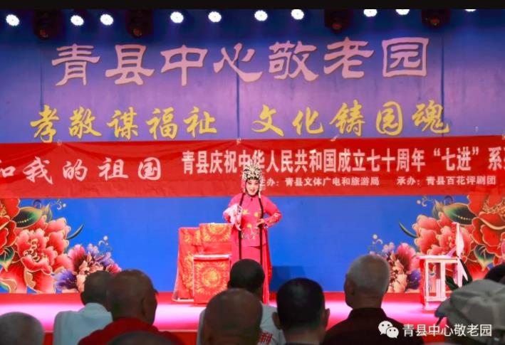 为庆祝建国七十周年,弘扬中国传统文化。6月21日上午,在县文体广电和旅游局的组织下,县百花评剧团来到我园,为在园老人献上一场精彩的慰问演出,受到老人们的热烈欢迎。