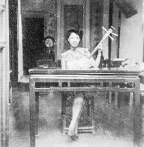 这张照片是我妈妈在1944年6月拍的,当时她只有19岁,我还没有出生。看妈妈的模样,有点专业评弹演员的味道吧?其实,她是票友。我们家开有一个票友聚会的地方,一些喜欢评弹的票友们常在我家聚会,各人来几段,切磋交流,业余娱乐。