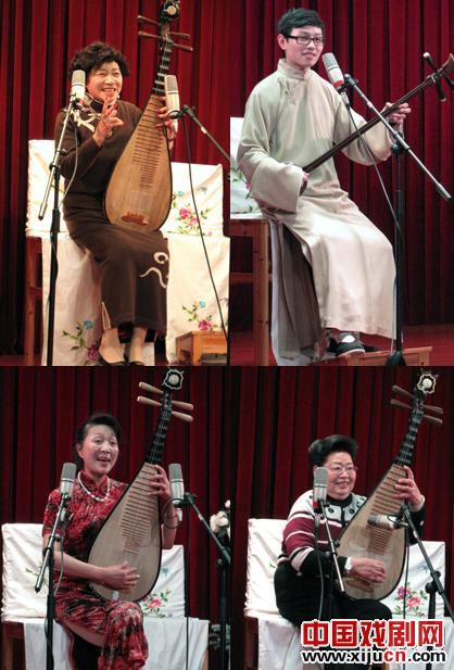 洪琪、郑原桀、周红、张梅龄(上左、右、下左、右,下同)演出,洪琪(80高龄,80岁学吹打)、 周红是《龙柏社区侨界沙龙》的,此周红非彼周红,同名同姓也