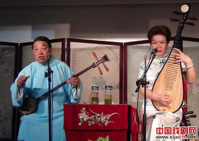 这档演出的是黄国万、王惠凤老师的长篇弹词《虞洽卿》。王惠凤在小落回后加唱了《蝶恋花》。当采风的师生得知王惠凤是上海评弹团国家一级演员,是徐丽仙、余红仙两位老师的嫡传弟子,顿时活跃了起来,散书后走上台来,与黄、王老师合影留念,并互动交流评弹知识,谈丽调,问余红仙老师近况等等,久久不愿离去。杨红教授还邀请王惠凤老师去北京讲课。