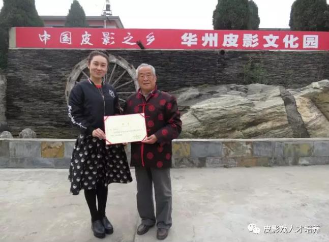 项目负责人梁晶院长向国家级皮影戏“非遗”传承人刘华老师颁发聘书